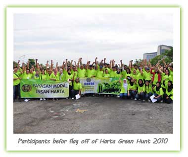 This one-day event was organized by Harta Core Human Capital with funding from Yayasan Modal Insan Harta (YMIH). It aims to increase awareness among Harta personnel and clients on the importance of green environment. The flag off ceremony at Putrajaya was graced by Datuk Nor Azmal Mohd Nasir, Deputy Chief Secretary of Green Technology and Water, Ministry and Energy, Green Technology and water. Participants include staff from various projects in Putrajaya, Putrajaya Hospital, Serdang Hospital, Harta head quarter, subsidiaries and associate companies.