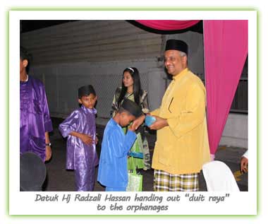 In conjunction with the fasting month on 2 September 2010, , there was an Iftar (Breaking Fast) with staffs and orphans from Rumah Silaturahim Nurul Qanaah at Harta head quarter for Ramadhan 1432. A short talk about fasting and its benefits by Ustaz Aidil Fadhli bin Misran from IKIM (Institute Kefahaman Islam) was also held before the breaking fast. Our Managing Director, Datuk Hj Radzali Hassan handed out “duit raya” to the orphans. Meanwhile, in Kuantan similar Iftar program was held at Rumah Curahan Kasih Sayang Ikhwan, Pahang on 4 September 2010, Assistant Manager, En Azhar Abu Bakar handed over “duit raya” to the orphans.